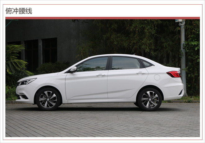 车身侧面沿袭家族化双腰线设计,通过双腰线的比例变化,凸显整车前冲的运动姿态。配合B柱及后三角窗黑色钢琴烤漆设计、从C柱延伸而下的背部线条、溜背造型,也是体现出运动感。新车配备优科豪马205/60 R16规格轮胎,最高配和最低配为R17,新车还配备无钥匙进入功能。