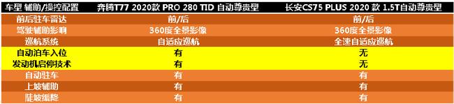 在辅助操控配置方面,奔腾T77 PRO所具备的自动泊车入位和发动机启停技术,长安CS75 PLUS并不具备,虽然自动泊车入位功能对于老司机来说可有可无,但对于倒车技术并不成熟的新手来说该功能可以说是十分友好的了。